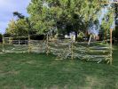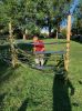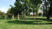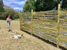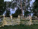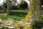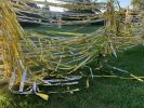 Material: Installation mit Rettungsdecken geschnitten, Holzpfähle