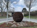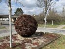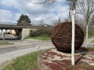 Der Titel der Arbeit rührt von der Herstellungsweise. Die Rohre sind gegen den Uhrzeigersinn verschweißt. Sie rebellieren sozusagen gegen diese Drehrichtung: Gegen den Strich. In der fertigen Arbeit ist dies allerdings nicht mehr zu sehen. Besonders reizvoll ist auch ein Blick aus der Nähe. Wenn man durch die Lücken in die Kugel schaut, wirft bei Sonnenlicht die durchbrochene Kugel innen reizvolle Schattenmuster.