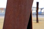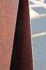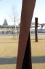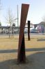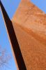 "Meine Serie der schlanken, hochaufragenden Dreiecksfaltungen aus Corten-Stahl ist über mehrere Jahre entstanden. Vorausgegangen sind zahlreiche Entwürfe aus Karton, von denen ich schließlich nur insgesamt 5 Modelle als Stahlplastiken realisiert habe, die für mich am überzeugendsten waren. Da der Stahl sich auch nicht beliebig falten ließ, bestehen die fertigen Freiplastiken aus einem Mix von gefalteten und geschweißten Stahlplatten, was aber durch die exakte Bearbeitung der geschweißten Partien nicht auffällt.