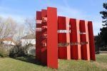 Der Bau des sogenannten "Volkshauses" in den späten 1920er Jahren war ein außergewöhnliches Beispiel sozialen Engagements - Initiative und Selbsthilfe eines “Vereins zur Errichtung eines Arbeitervereinshauses”. Der Entwurf eines “anonymen” Architekten im Geist und Stil der konstruktivistischen Moderne war Grundlage für eine architektonische Besonderheit von außerordentlicher Qualität. 2002 beantragte die DKP-Fraktion in der Stadtverordnetenversammlung von Mörfelden-Walldorf, vor dem erneuerten Bürgerhaus ein Denkmal zu errichten, das an die Erbauer des Volkshauses - und an ihr Schicksal - erinnert. Es wurde ein Wettbewerb ausgeschrieben, 33 Vorschläge und Entwürfe gingen ein. Schweizer erhielt 2006 den 1. Preis für seinen Entwurf "Also seid ihr verschwunden, aber nicht vergessen" - ein Zitat aus dem Gedicht “An die Kämpfer in den Konzentrationslagern” von Bertolt Brecht, 1933 entstanden. In der Presse war zu lesen: „Die aufgefalteten Seitenteile wirken aus der Perspektive wie rote Fahnen im Wind. Ein Schrei in Rot!“ Die Schrift / der Zeichensatz geht auf Paul Renner 1928 zurück. Realisierung im Auftrag der Stadt 2007.