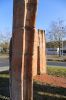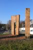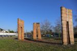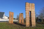 (...) Ein Tor reckt sich und streckt sich wie nach gesundem Schlaf, eins dehnt sich im Fuß, sucht sicheren Halt, eins steht militärisch stramm. Keines der drei ist mit der Messlatte begradigt, und nur wer genau hinsieht bemerkt, wie sich die Kanten aus dem Lot biegen. Sanfte Bewegung macht jedes zum Unikat, wie die Menschen, die hindurchgehen: Keiner gleicht dem anderen. Jedes Tor ist ein Einzelnes aus Vielen, zusammengesetzt aus verformtem Ziegel, aus der Norm getrieben, vertrieben.
