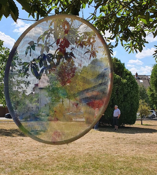 Künstler*in: Elizabeth ThallauerEntstehung: 2020Material: Glasfasernetz, Akryl, PVCDurchmesser: 75 cm
