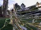Material: Installation mit Rettungsdecken geschnitten, Holzpfähle