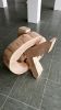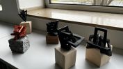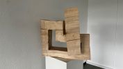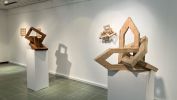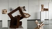 Die Holzskulpturen von Paul Hirsch bestehen aus mehreren beweglichen Teilen, die aus einem Stamm ohne Nahtstelle gearbeitet sind. Bei jedem Aufbau kann die Form der Skulpturen verändert werden, so dass der Betrachter seine eigenen ästhetischen Vorstellungen mit einbringen kann. Hirsch lotet damit den Spielraum zwischen eigener Autorschaft und Partizipation aus.