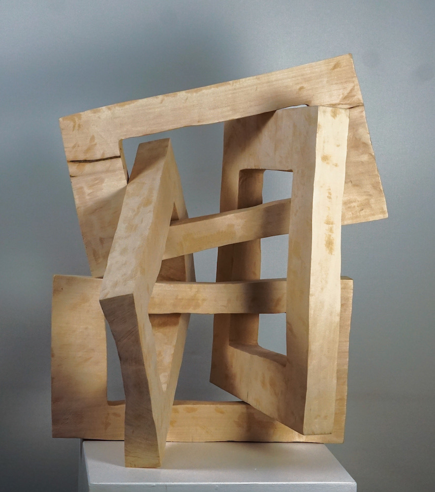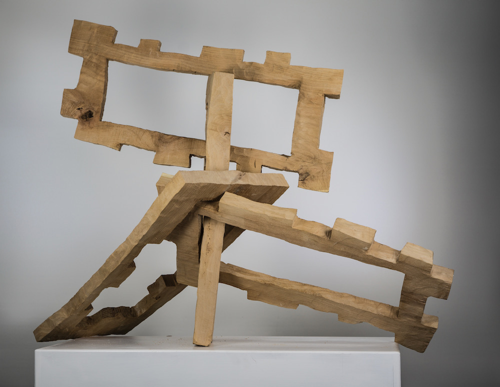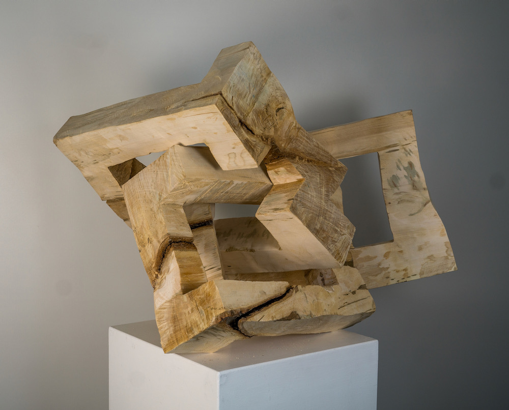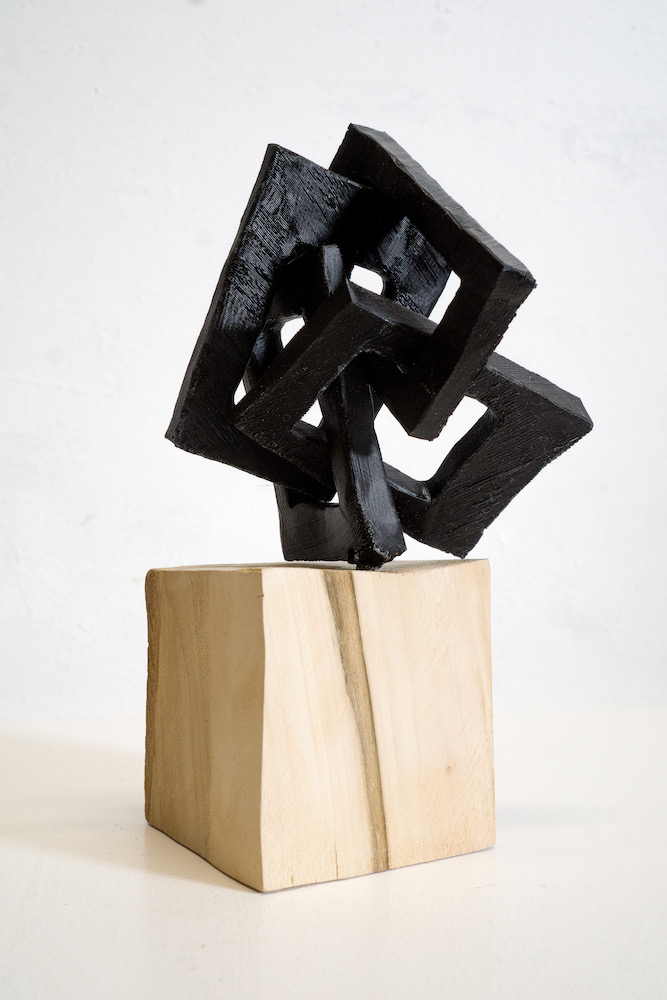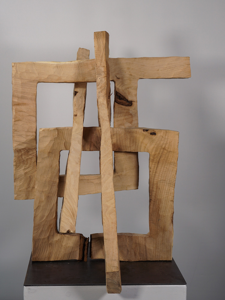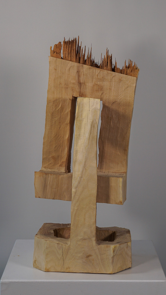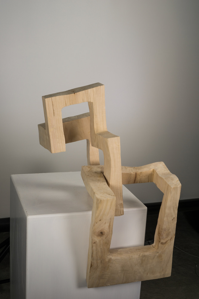 Paul Hirsch arbeitet mit Holzstämmen, die mit der Kettensäge bearbeitet werden. Die Werke bestehen immer aus ineinander verschachtelten und beweglichen Teilen, die unterschiedlich angeordnet werden können. Auf diese Art entstehen viele verschiedene Aufstellungsmöglichkeiten. Bei einigen Arbeiten wird der Betrachter aufgefordert, selbst Hand anzulegen und Varianten auszuprobieren. Weitere Fotos von Arbeiten finden Sie auf der Homepage von Paul Hirsch.