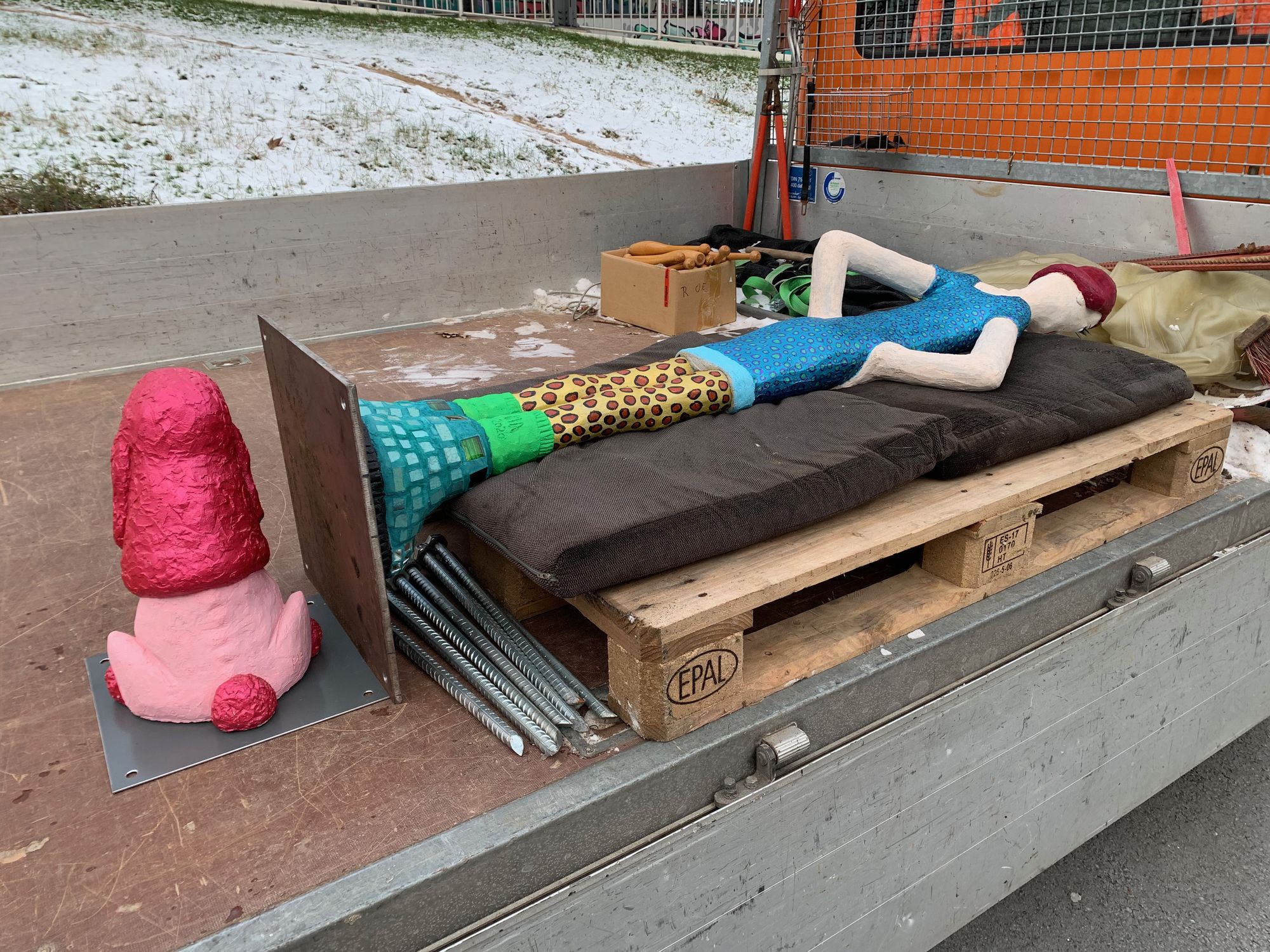 Nach dem Umzug des Paares am 24. März in die Richard-Neutra-Straße, erreicht sie am Montag in der Woche darauf ihre letzte Station, den Skulpturenpark in Mörfelden. Dort steht sie bis zum 6. April 2021.
