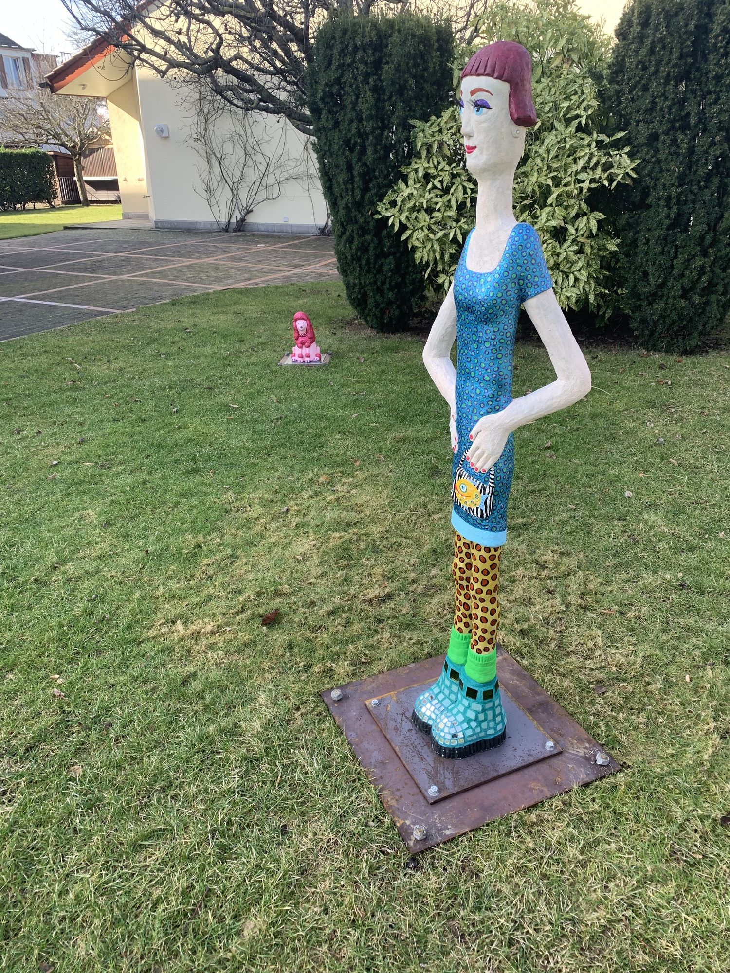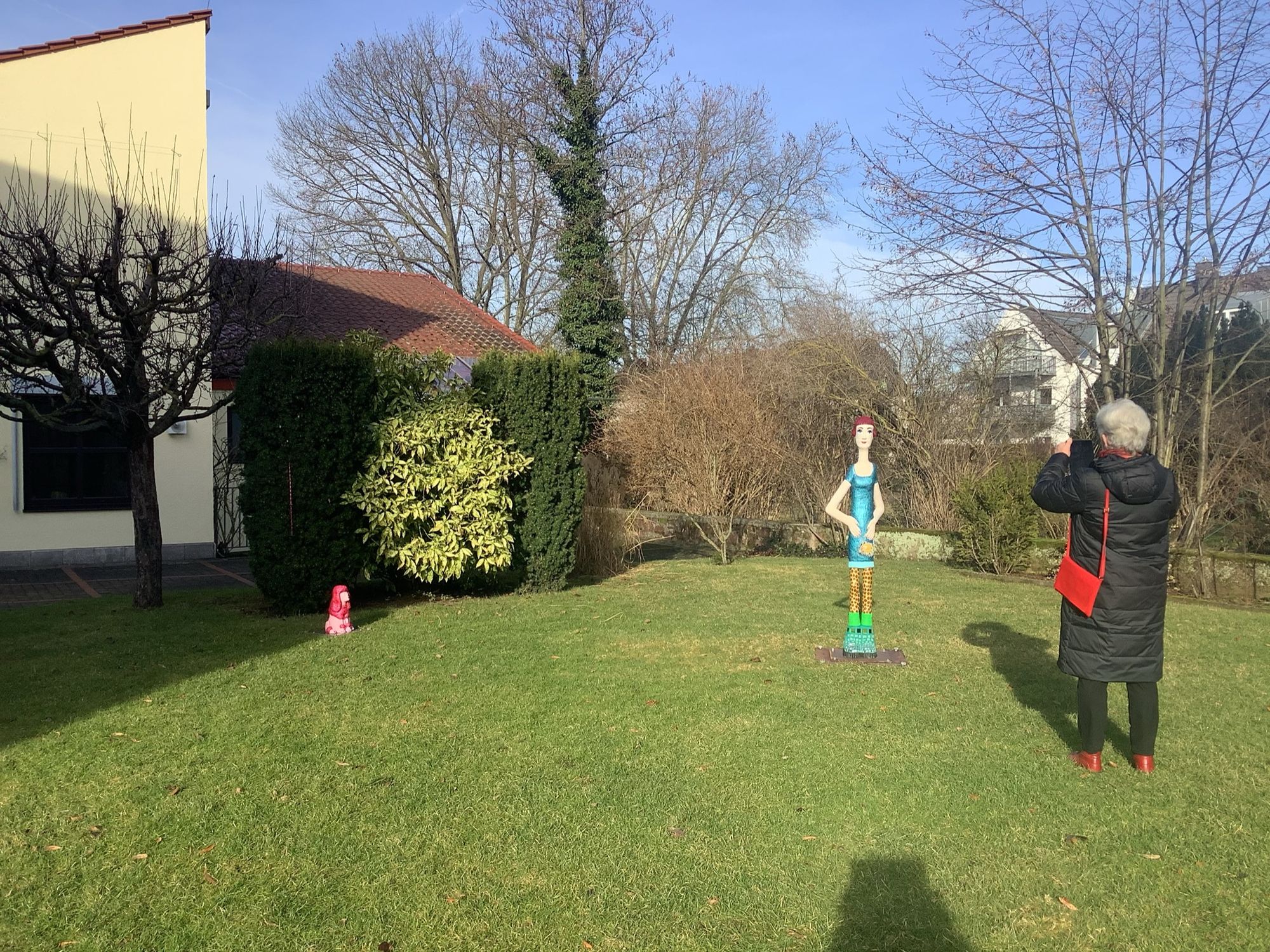 Pia Grambart-Delalic hat bereits 2013 auf dem 16. Skulpturenpark ihre bunt bemalten Figuren aus Beton ausgestellt. Ihre "Lady With A Pink Poodle" ist ebenfalls aus mit Acrylfarbe bemaltem Beton und hat genau so eine lebensfrohe und humorvolle Ausstrahlung, wie die Arbeiten damals. Wir sind sehr froh, dass wir Frau Grambart-Delalic für diese Aktion gewinnen konnten.