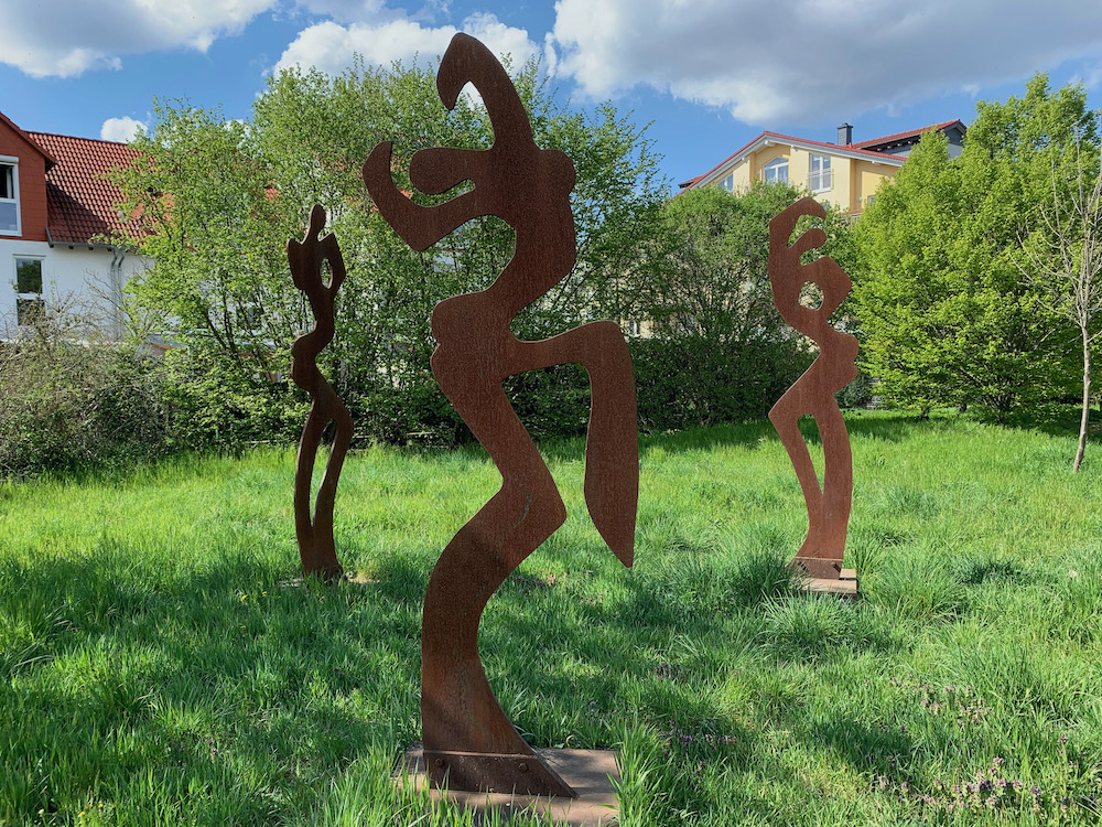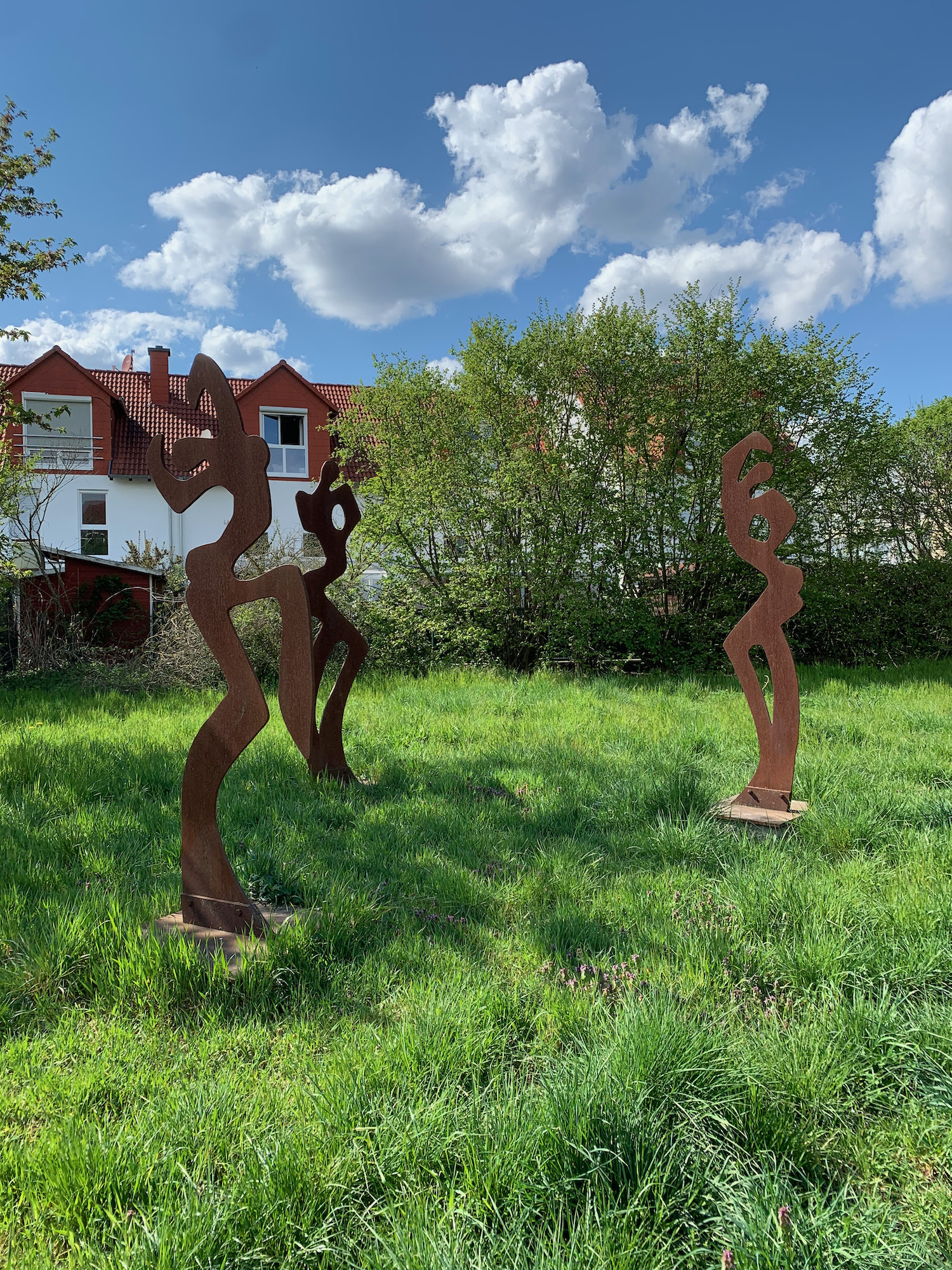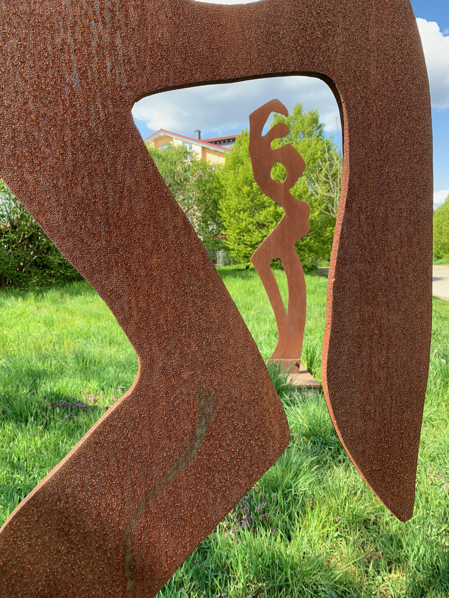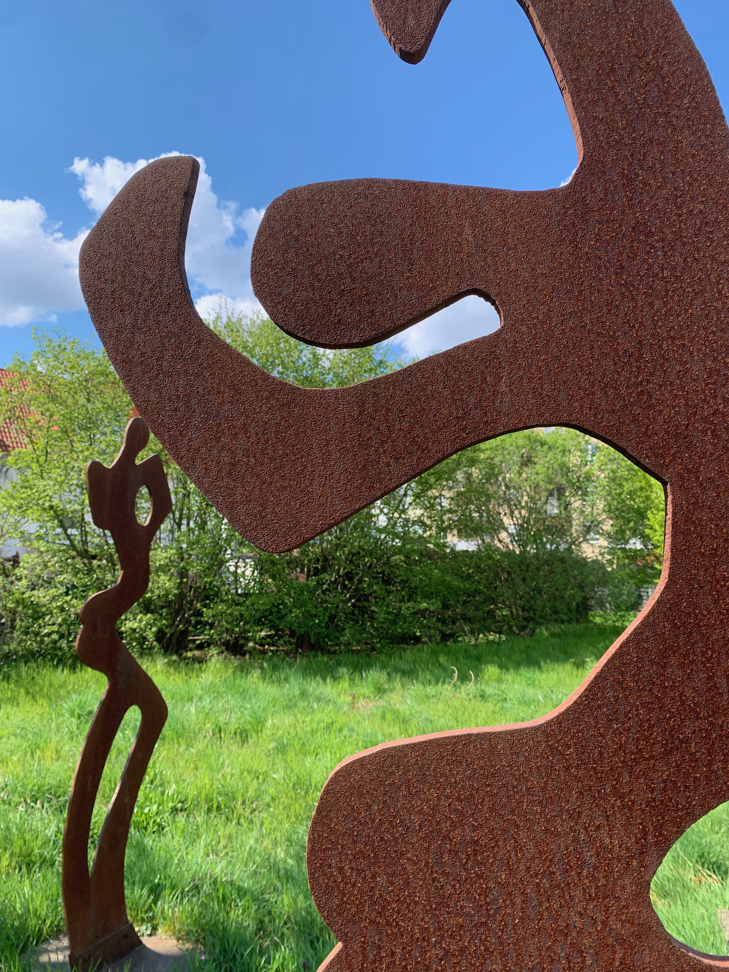 Anmutig verharren sie in sinnlich tänzerischer Gebärde und faszinieren den Betrachter durch ihr mitreißendes Temperament. Der kalte Stahl, ummantelt von rostroter Patina, wird seines Charakters beraubt und am Ende steht die Schöpfungsgeschichte der Gil Buchholz, wenn sie im Flug der Funken den Stahl beseelt.