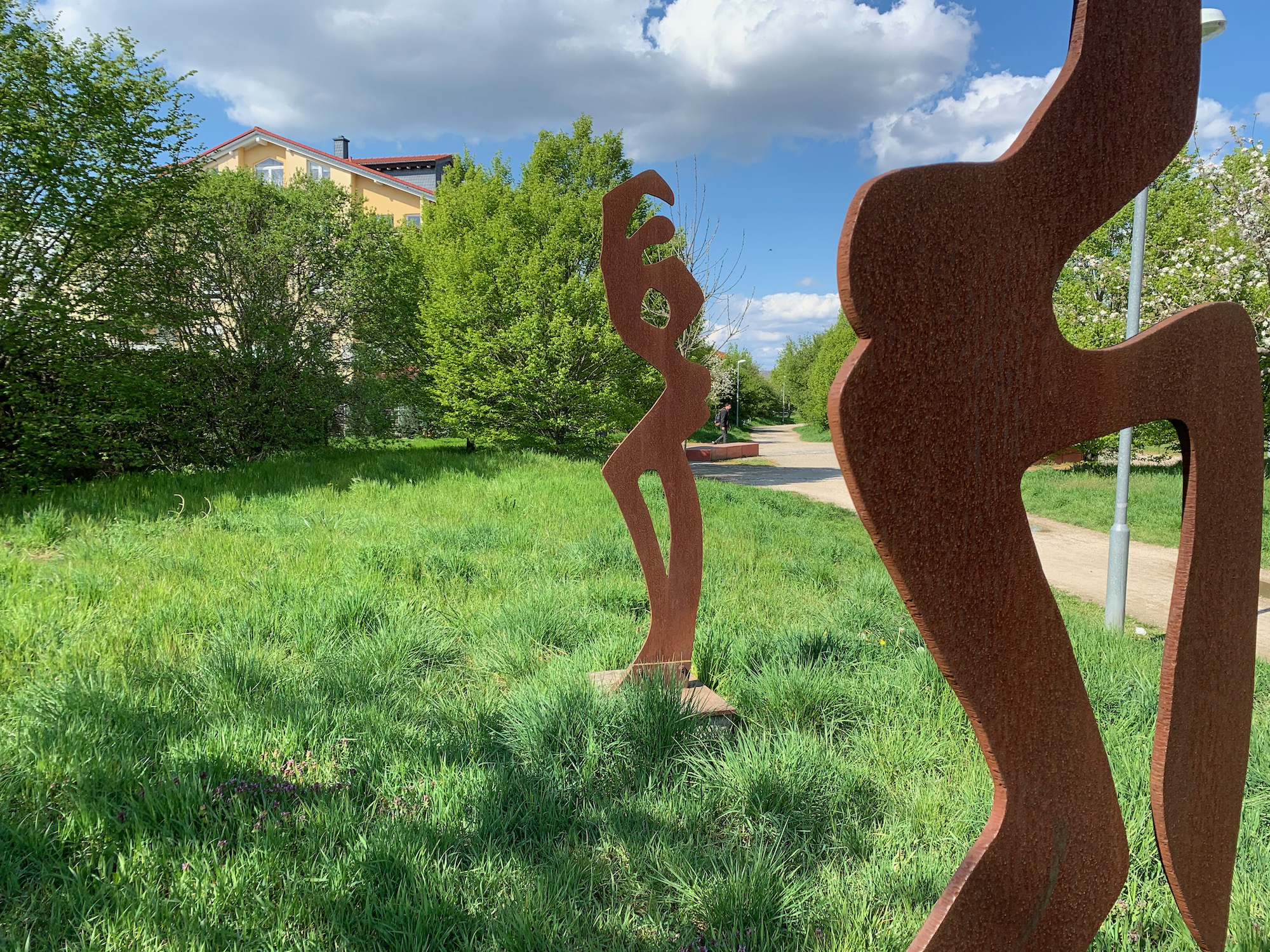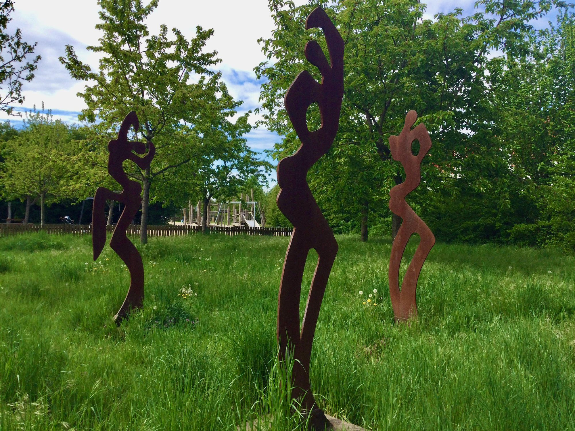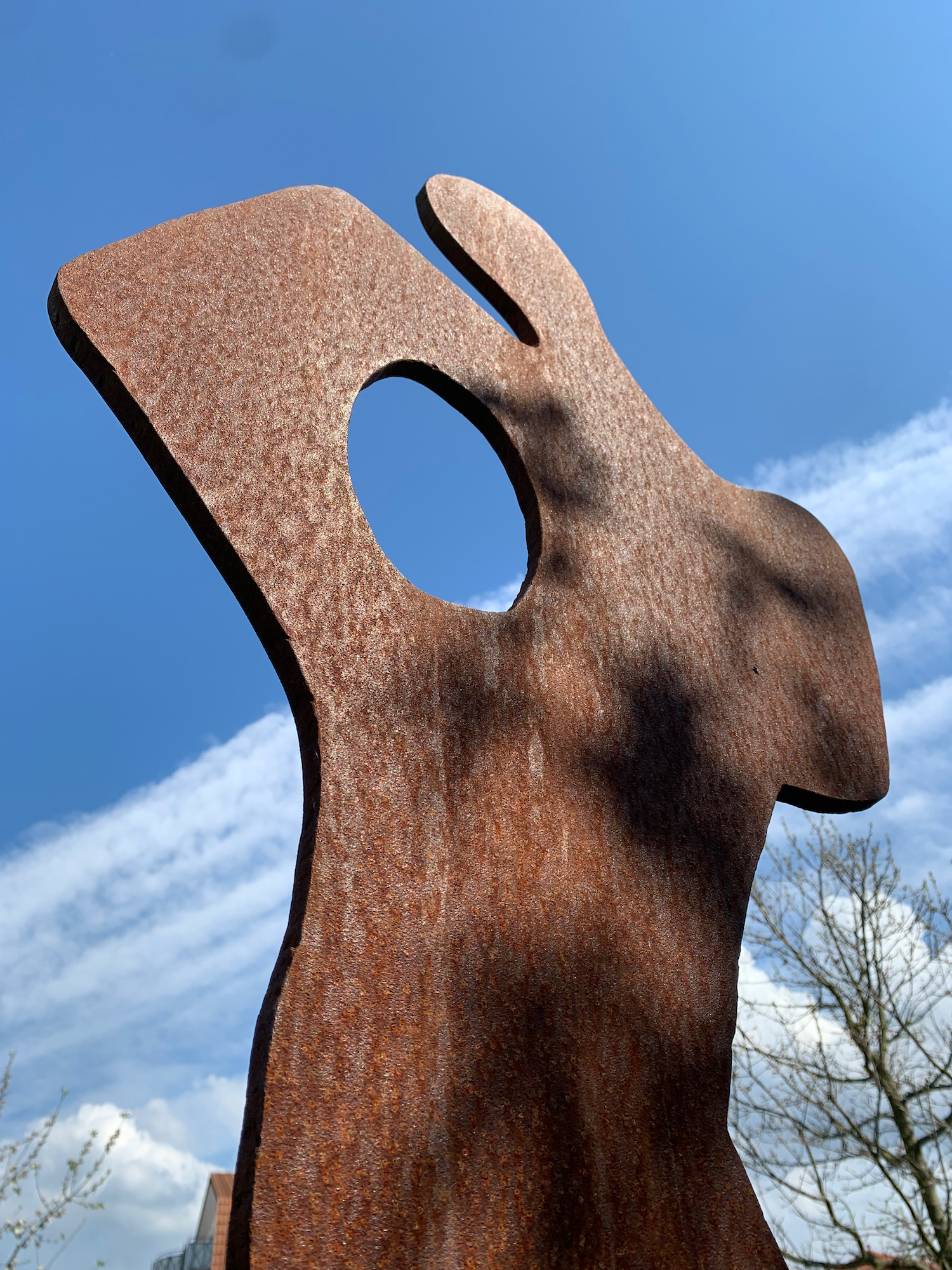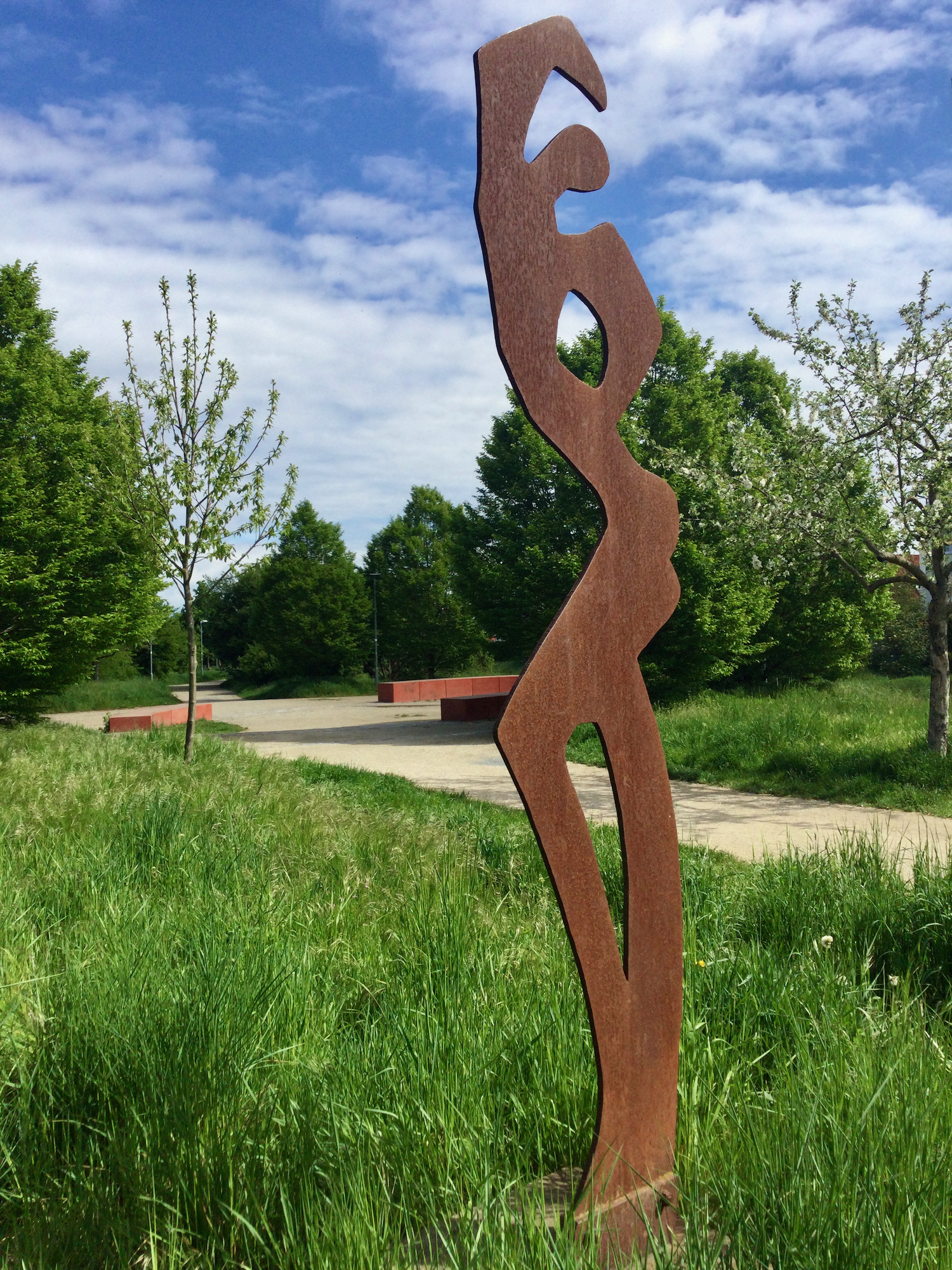 Anmutig verharren sie in sinnlich tänzerischer Gebärde und faszinieren den Betrachter durch ihr mitreißendes Temperament. Der kalte Stahl, ummantelt von rostroter Patina, wird seines Charakters beraubt und am Ende steht die Schöpfungsgeschichte der Gil Buchholz, wenn sie im Flug der Funken den Stahl beseelt.