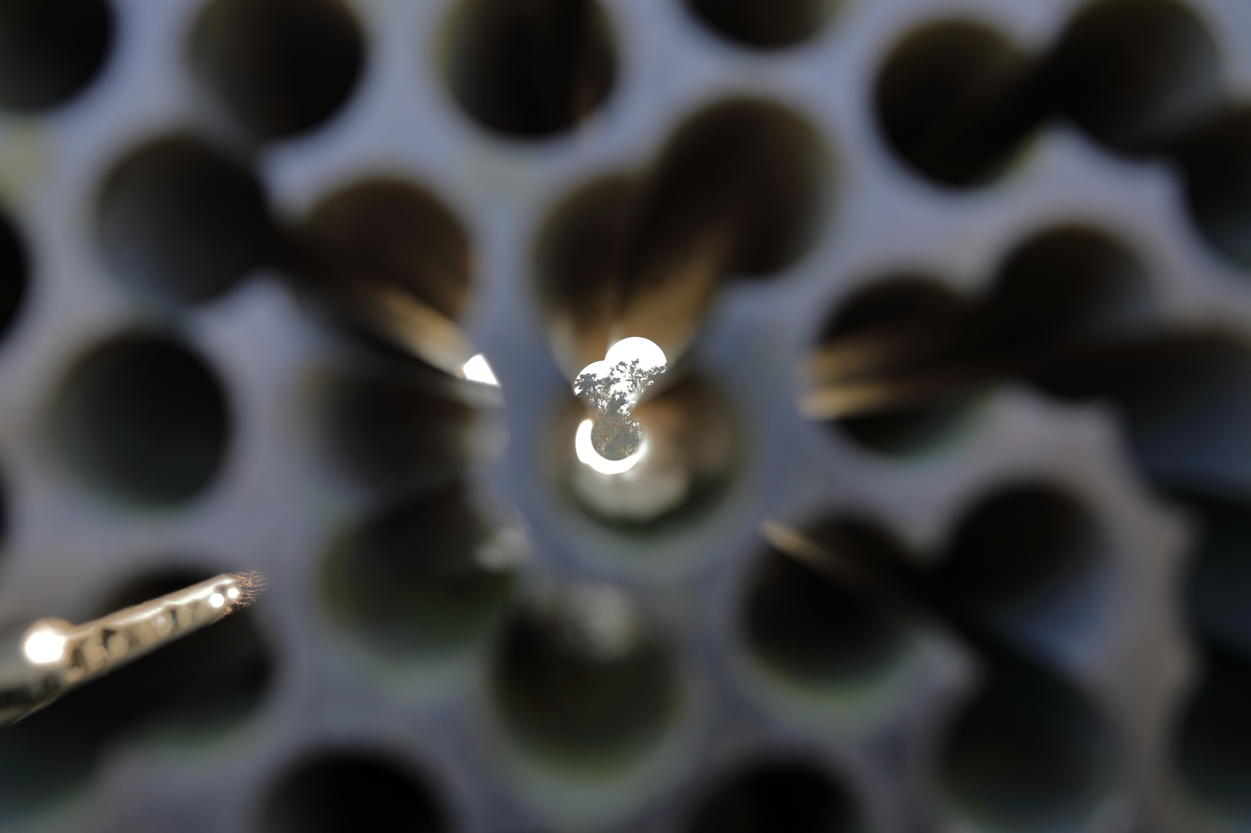 Der "Stein für das Licht" von Kubach & Kropp ist ein massiver Steinquader, der mittels dicht gesetzter serieller Bohrungen die Geschlossenheit des Granits auflöst. Es bleibt nur noch ein netzartiges Gefüge aus schmalen Stegen stehen, so, dass das Licht in den Stein hinein und durch ihn hindurch scheinen kann.