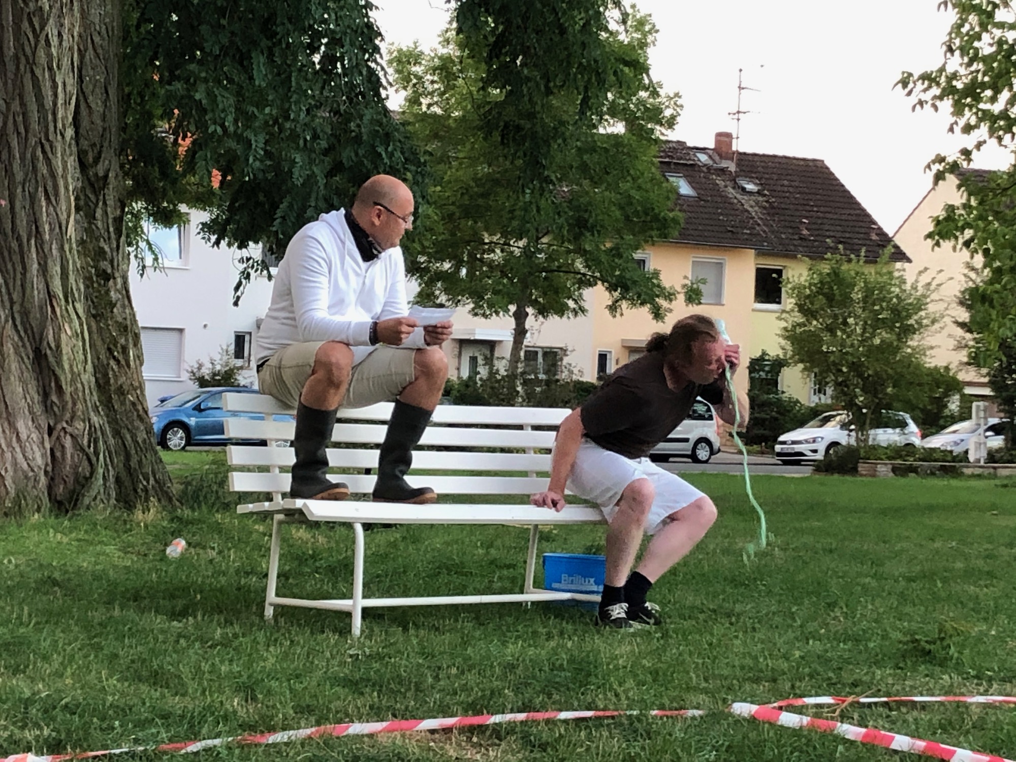 Marco Weil und Hans Bolz sind seit Jahren fester Bestandteil der Skulpturen-Ausstellungen im Bürgerpark. Die beiden eigenwilligen Performance-Künstler überraschen immer wieder durch ihre ausgefallenen Inszenierungen.